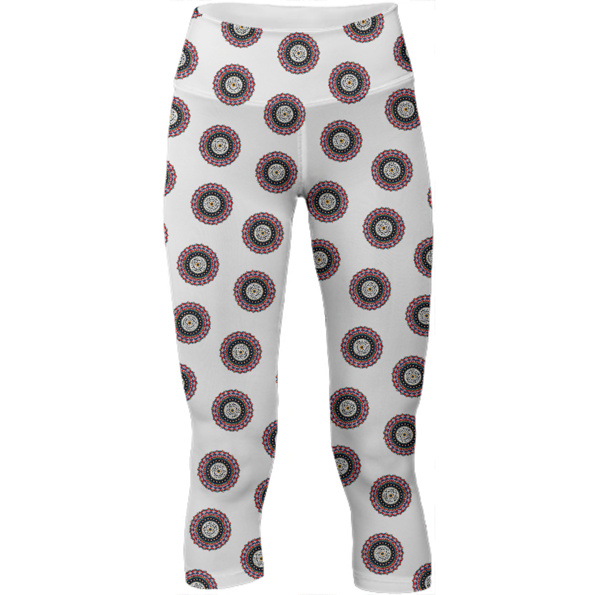 Mid calf length stretch yoga pants with an extra tall waistband for comfort and flexibility during workout.