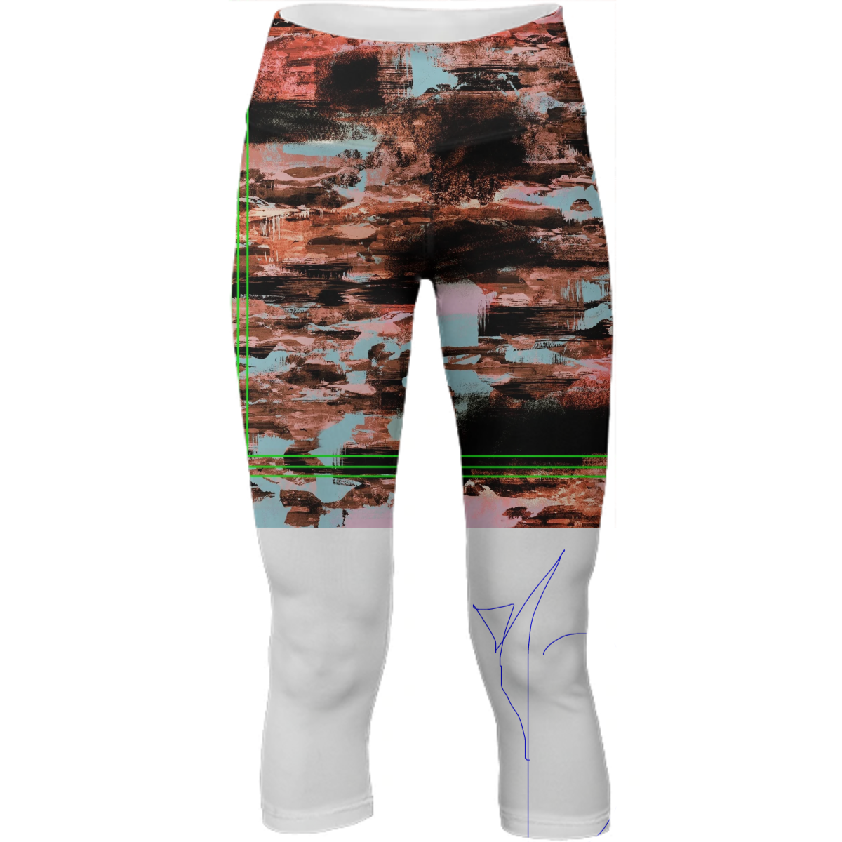 Mid calf length stretch yoga pants with an extra tall waistband for comfort and flexibility during workout.