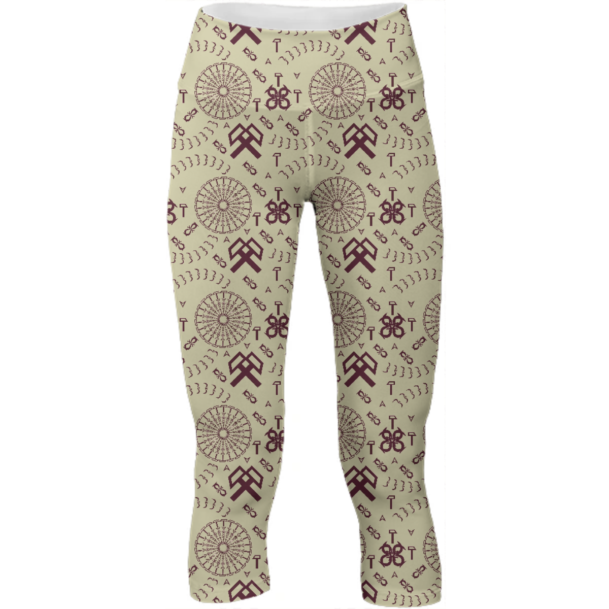Mid calf length stretch yoga pants with an extra tall waistband for comfort and flexibility during workout.