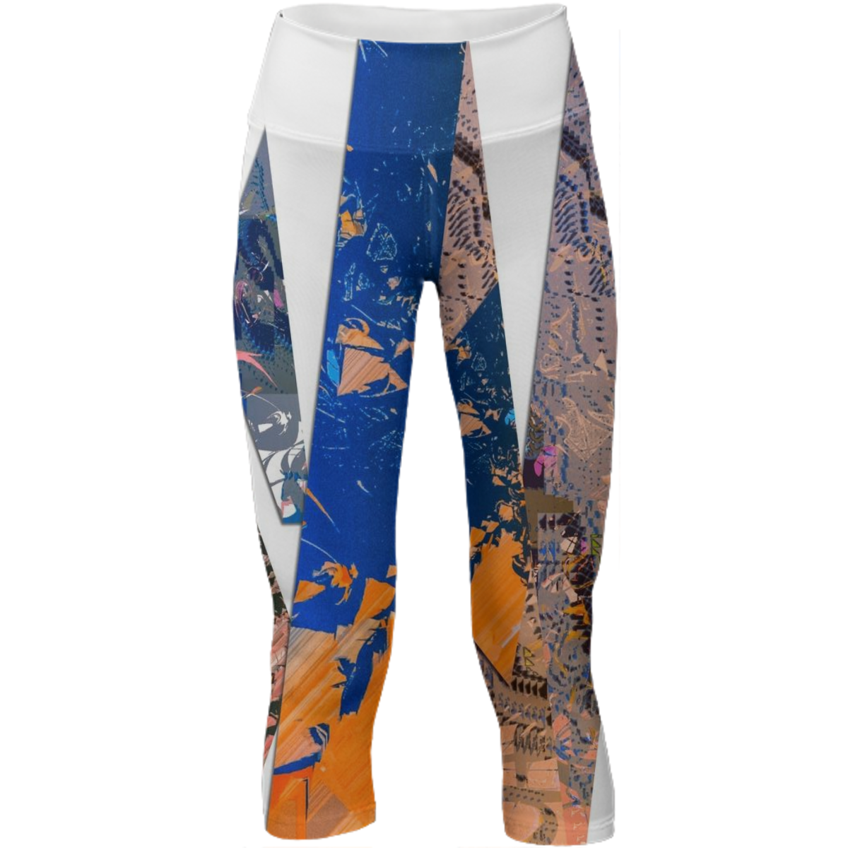 Mid calf length stretch yoga pants with an extra tall waistband for comfort and flexibility during workout.
