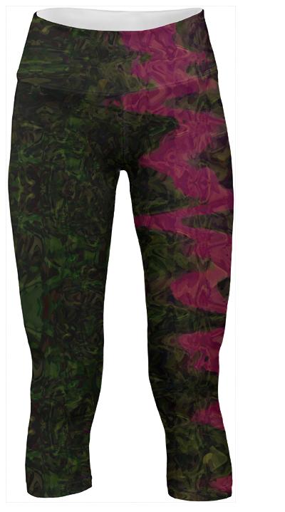 Mid calf length stretch yoga pants with an extra tall waistband for comfort and flexibility during workout.
