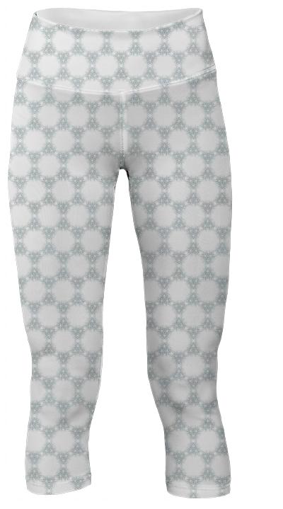 Mid calf length stretch yoga pants with an extra tall waistband for comfort and flexibility during workout.