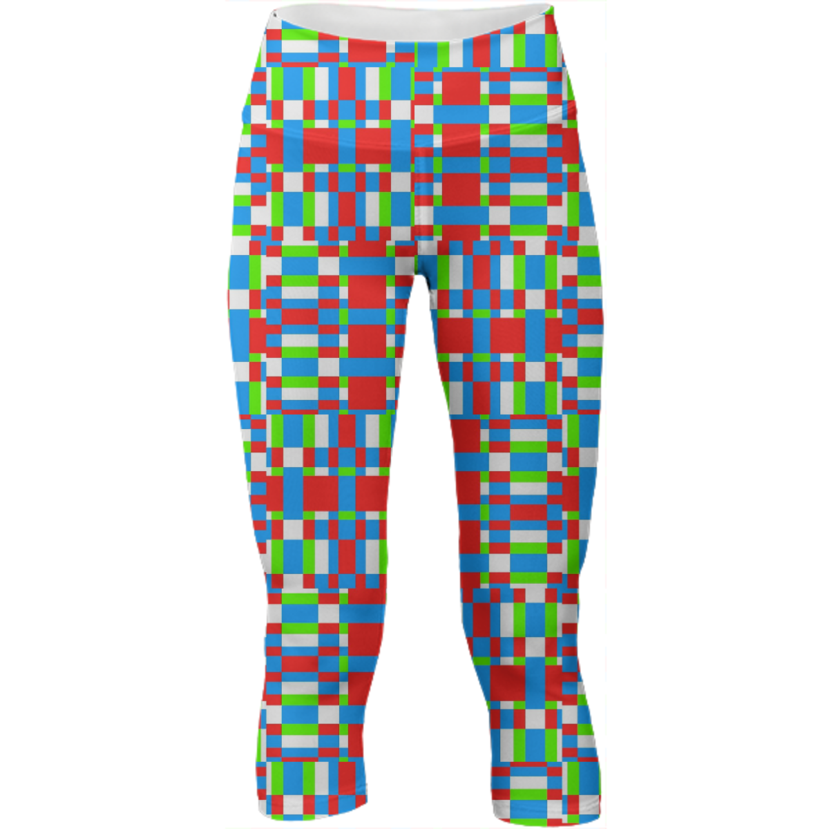 Mid calf length stretch yoga pants with an extra tall waistband for comfort and flexibility during workout.