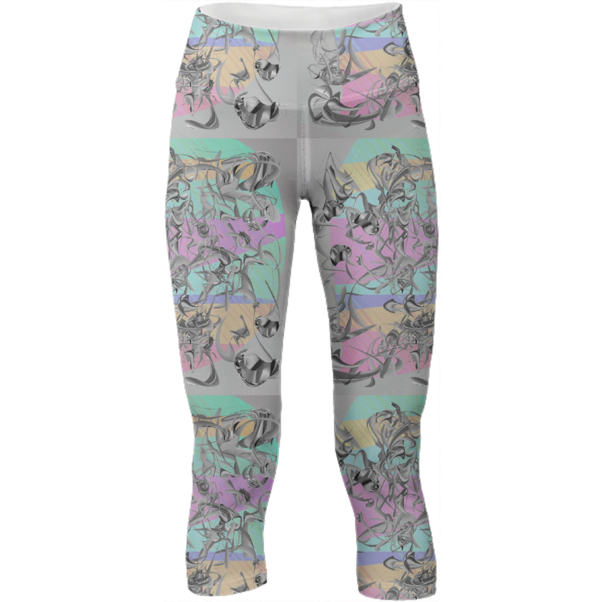 Mid calf length stretch yoga pants with an extra tall waistband for comfort and flexibility during workout.