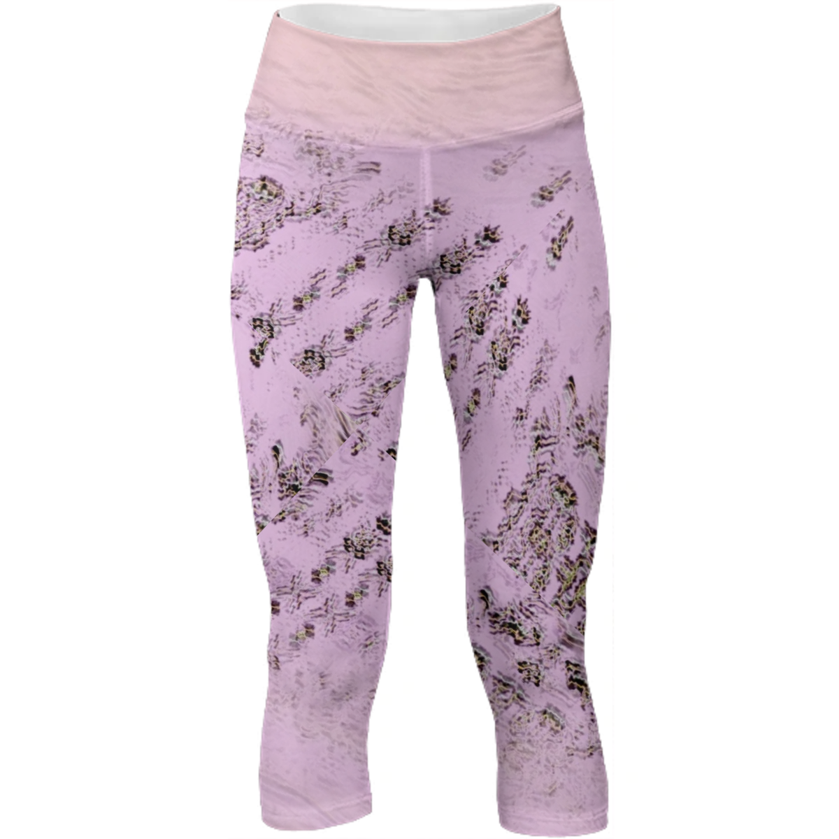 Mid calf length stretch yoga pants with an extra tall waistband for comfort and flexibility during workout.