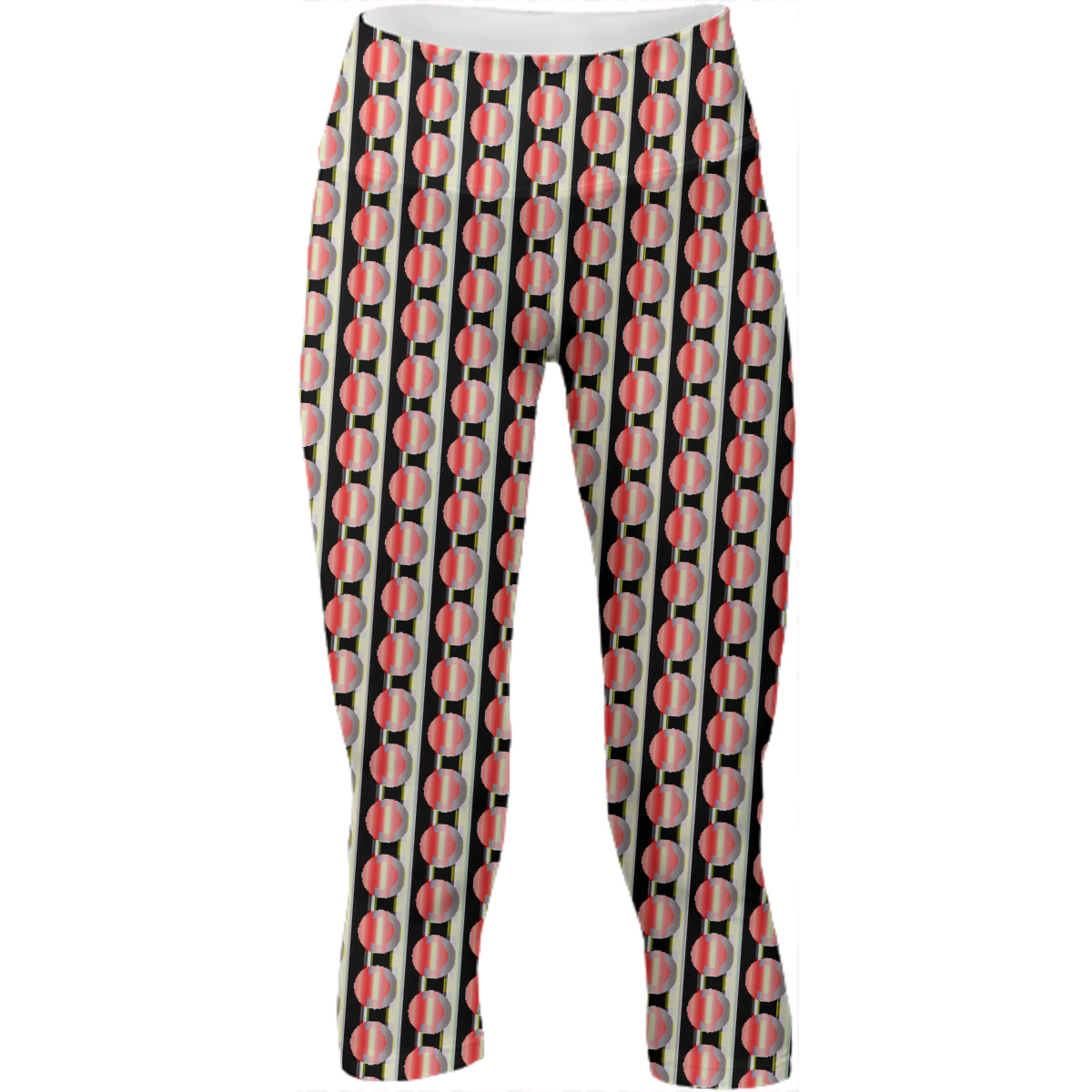 Mid calf length stretch yoga pants with an extra tall waistband for comfort and flexibility during workout.