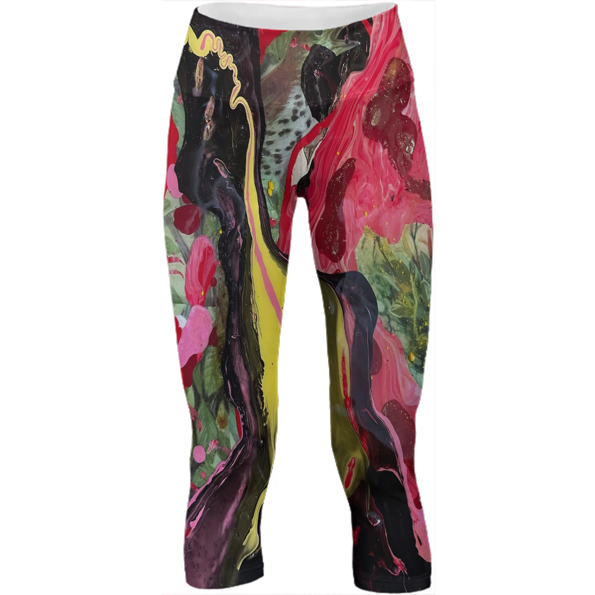 Mid calf length stretch yoga pants with an extra tall waistband for comfort and flexibility during workout.