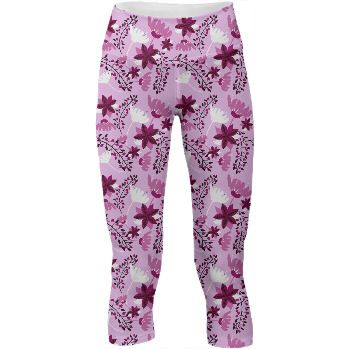 Mid calf length stretch yoga pants with an extra tall waistband for comfort and flexibility during workout.