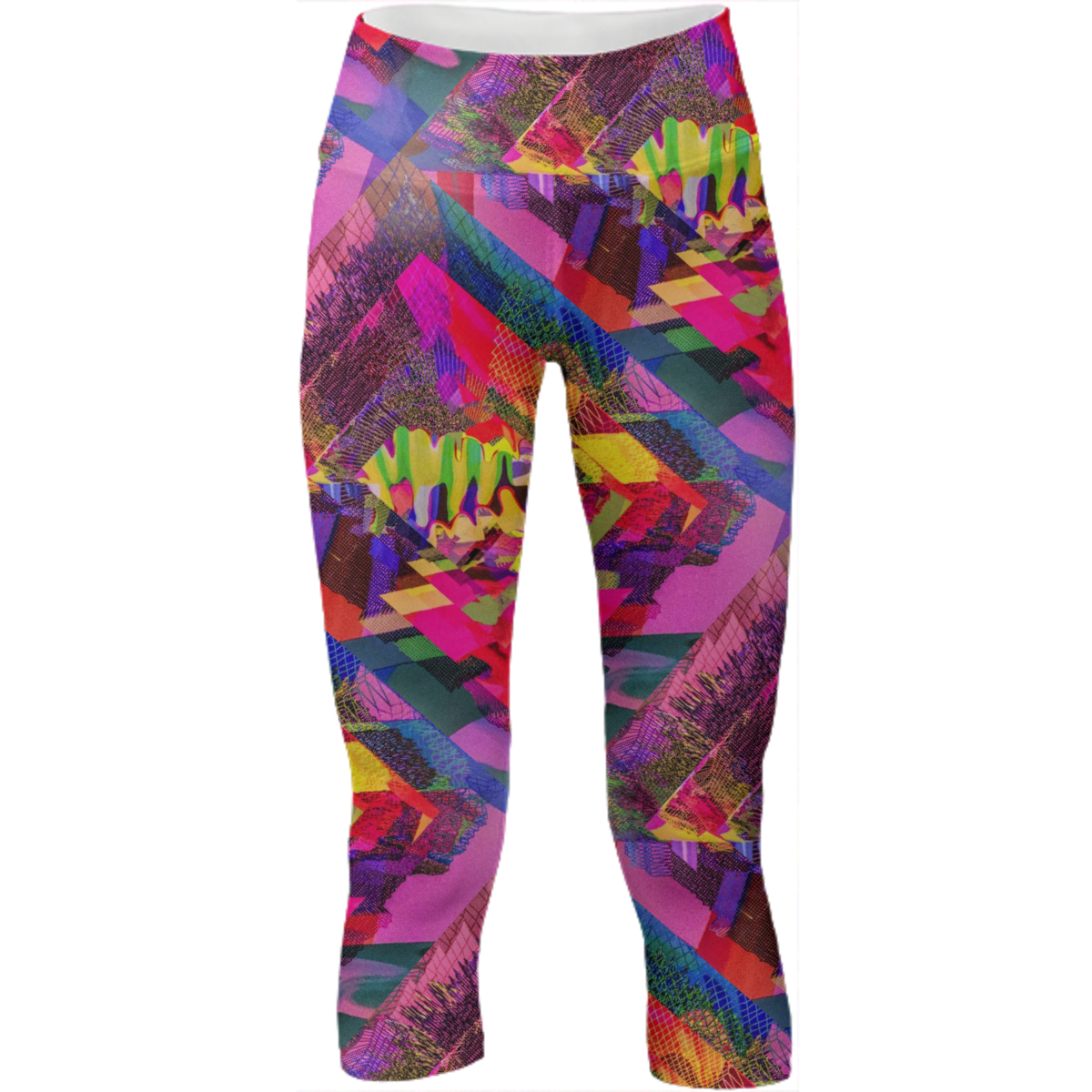 Mid calf length stretch yoga pants with an extra tall waistband for comfort and flexibility during workout.