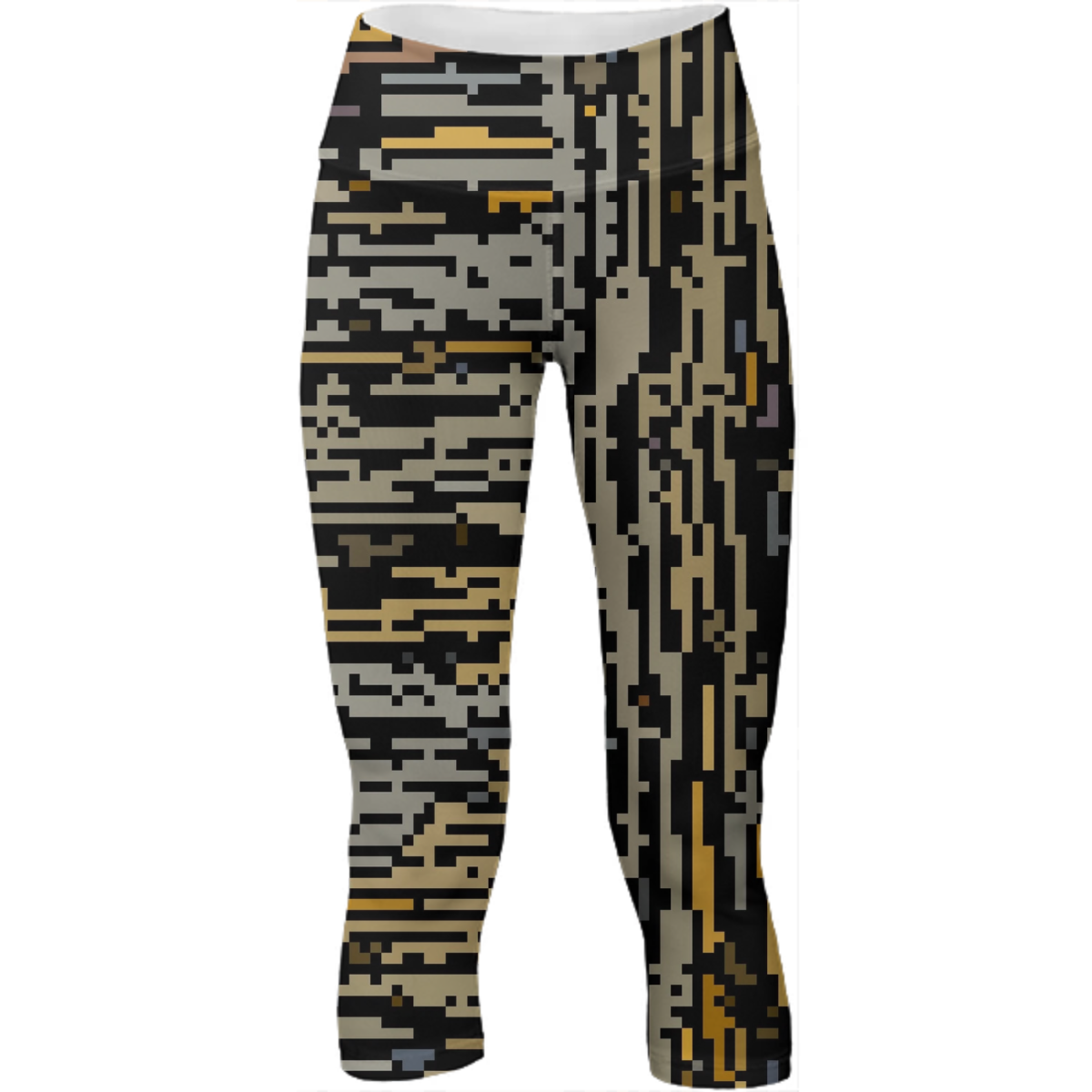Mid calf length stretch yoga pants with an extra tall waistband for comfort and flexibility during workout.