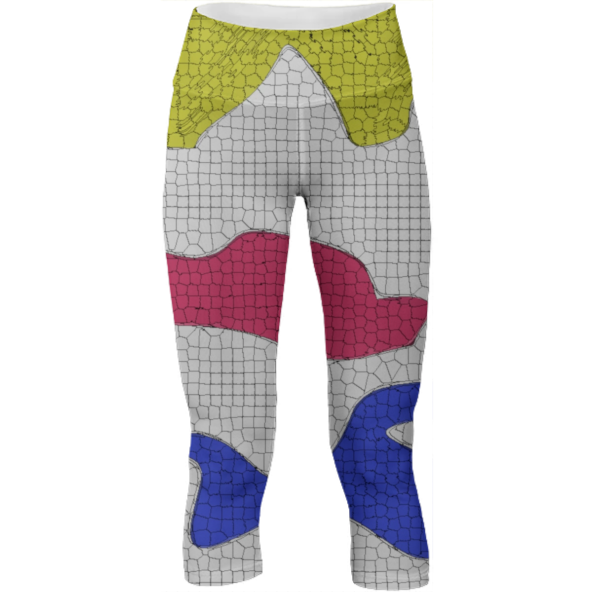 Mid calf length stretch yoga pants with an extra tall waistband for comfort and flexibility during workout.