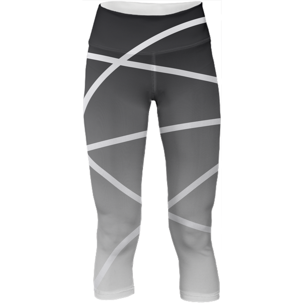 Mid calf length stretch yoga pants with an extra tall waistband for comfort and flexibility during workout.