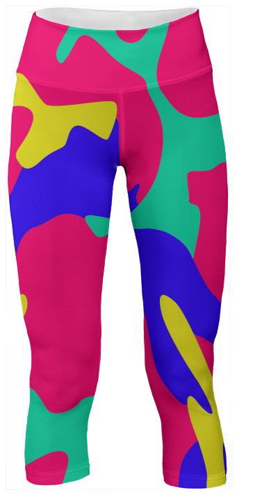 Mid calf length stretch yoga pants with an extra tall waistband for comfort and flexibility during workout.