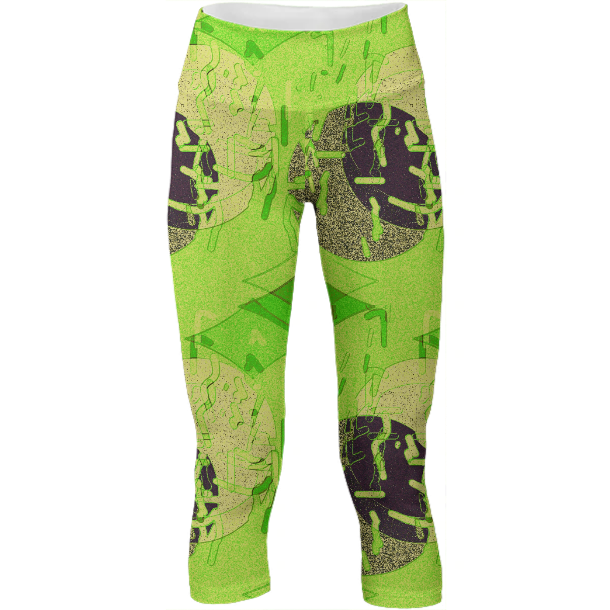 Mid calf length stretch yoga pants with an extra tall waistband for comfort and flexibility during workout.