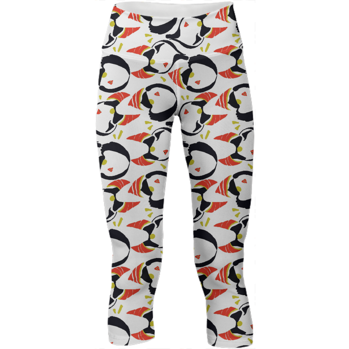 Mid calf length stretch yoga pants with an extra tall waistband for comfort and flexibility during workout.