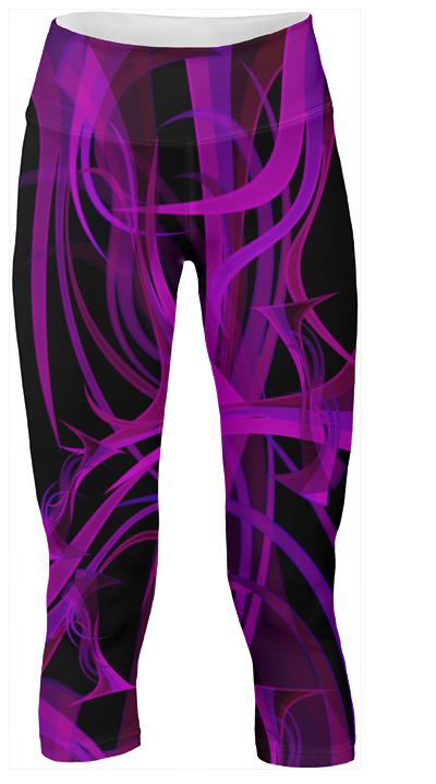 Mid calf length stretch yoga pants with an extra tall waistband for comfort and flexibility during workout.