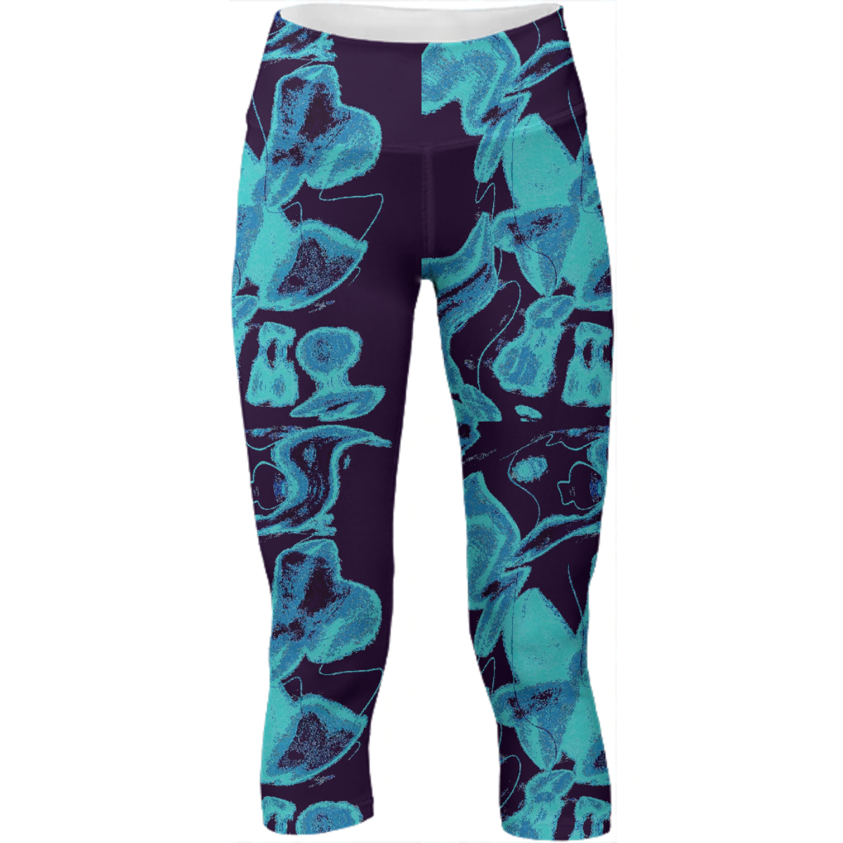 Mid calf length stretch yoga pants with an extra tall waistband for comfort and flexibility during workout.