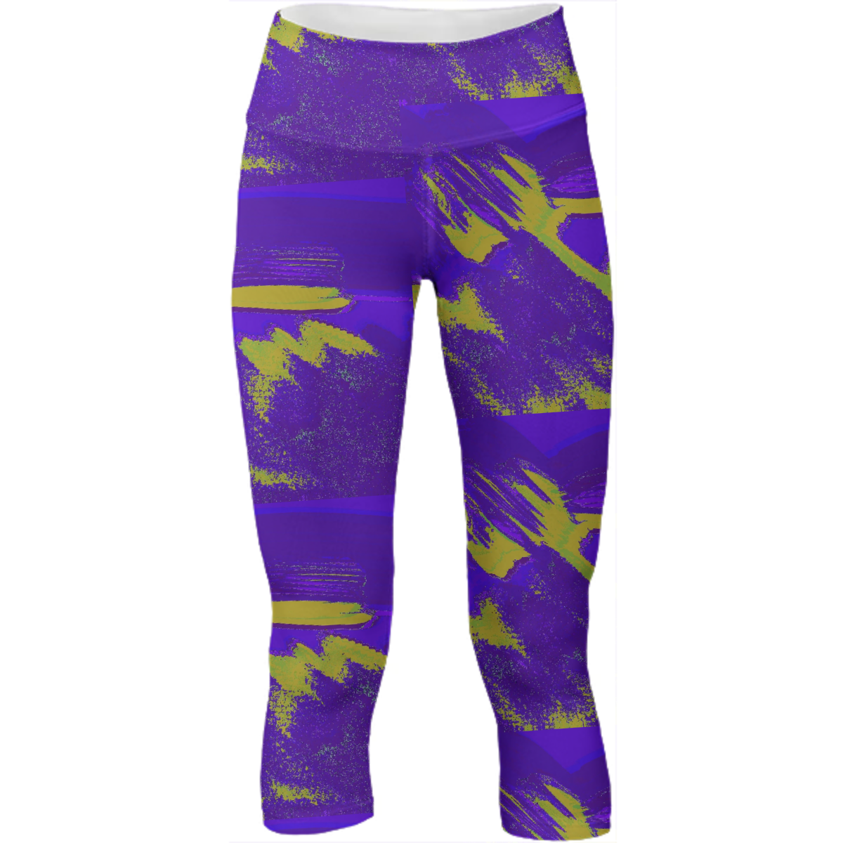 Mid calf length stretch yoga pants with an extra tall waistband for comfort and flexibility during workout.