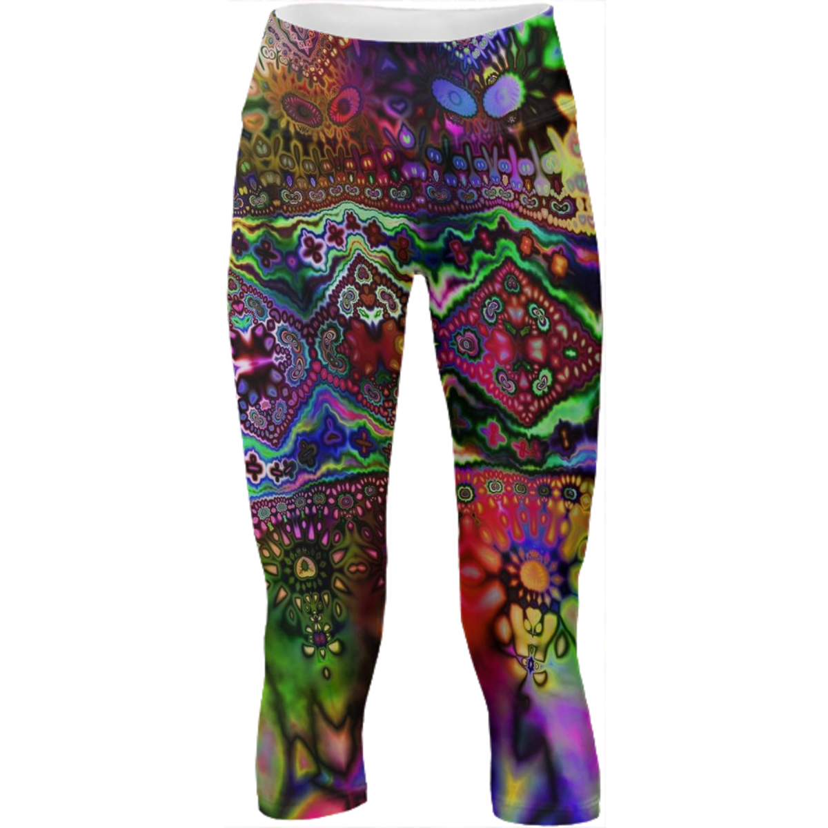 Mid calf length stretch yoga pants with an extra tall waistband for comfort and flexibility during workout.