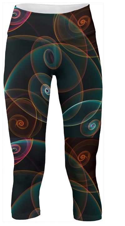Mid calf length stretch yoga pants with an extra tall waistband for comfort and flexibility during workout.