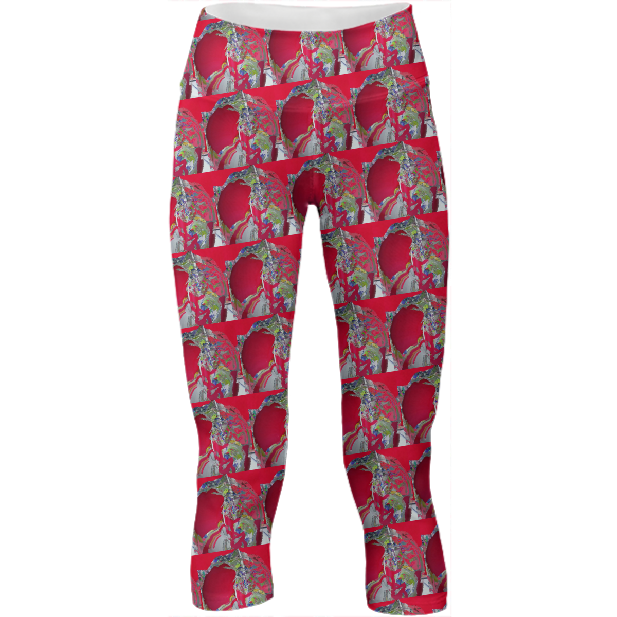 Mid calf length stretch yoga pants with an extra tall waistband for comfort and flexibility during workout.