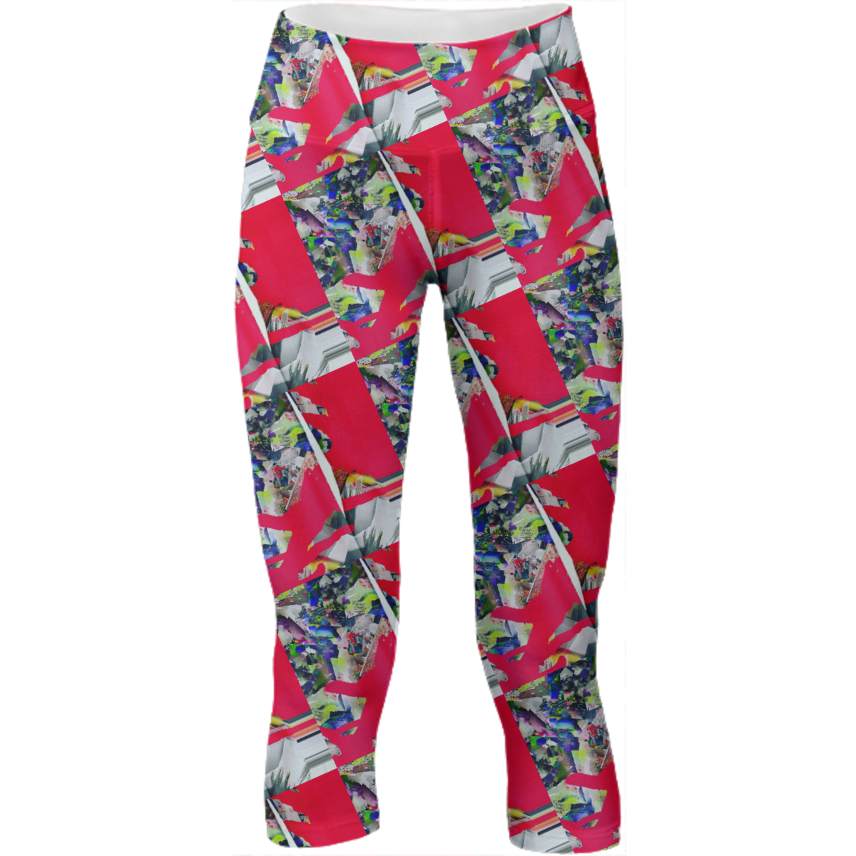 Mid calf length stretch yoga pants with an extra tall waistband for comfort and flexibility during workout.