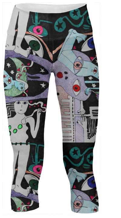 Mid calf length stretch yoga pants with an extra tall waistband for comfort and flexibility during workout.