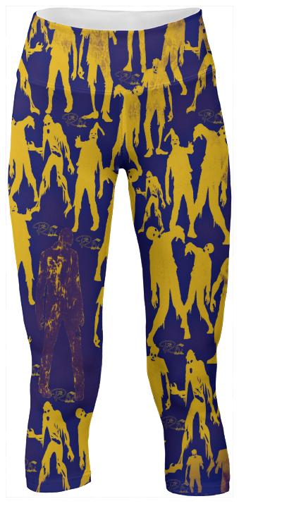 Mid calf length stretch yoga pants with an extra tall waistband for comfort and flexibility during workout.