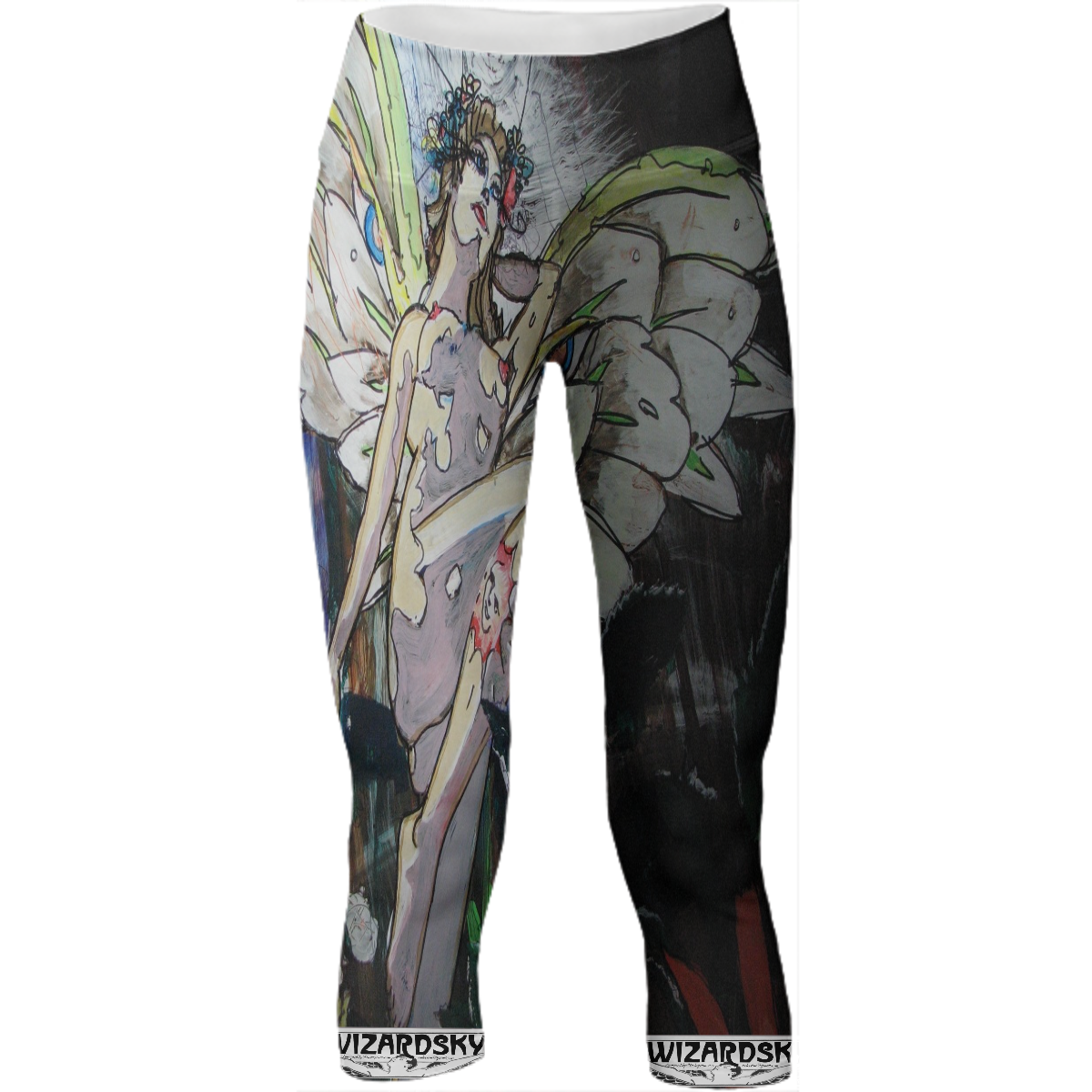 Mid calf length stretch yoga pants with an extra tall waistband for comfort and flexibility during workout.