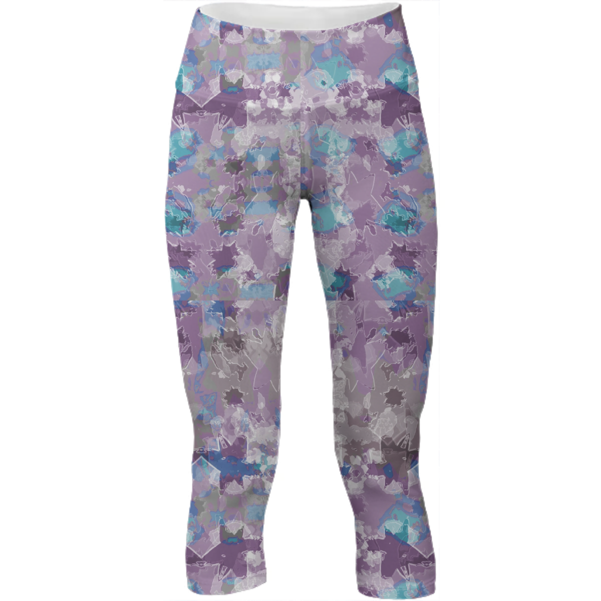 Mid calf length stretch yoga pants with an extra tall waistband for comfort and flexibility during workout.