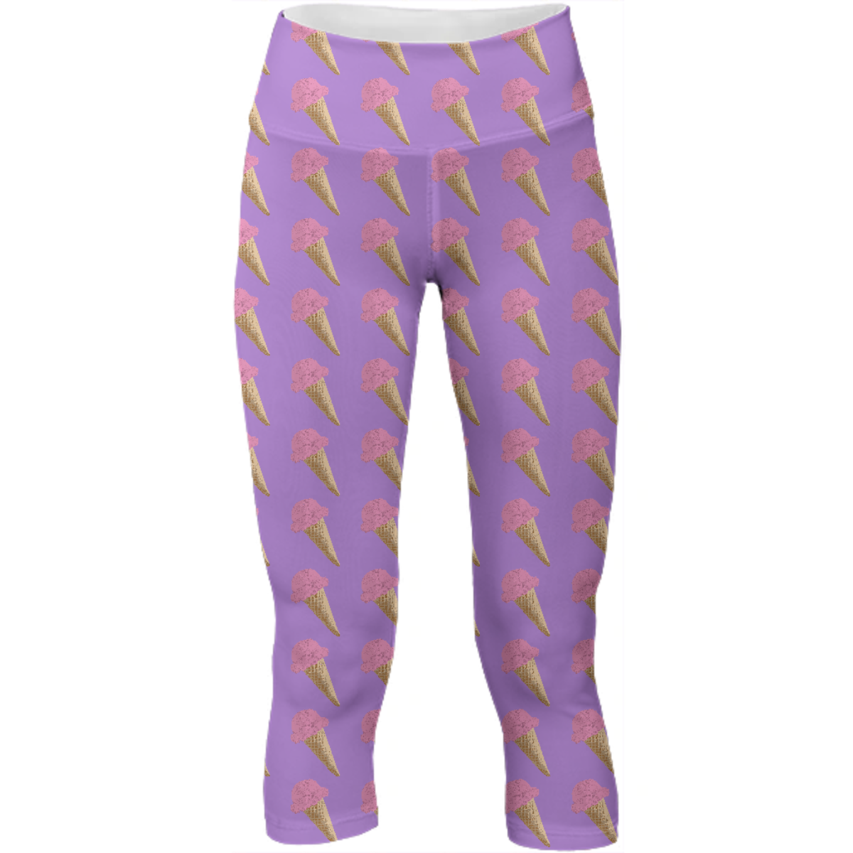 Mid calf length stretch yoga pants with an extra tall waistband for comfort and flexibility during workout.