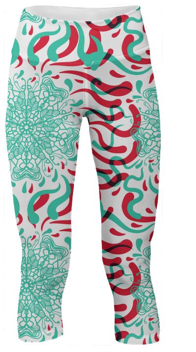 Mid calf length stretch yoga pants with an extra tall waistband for comfort and flexibility during workout.