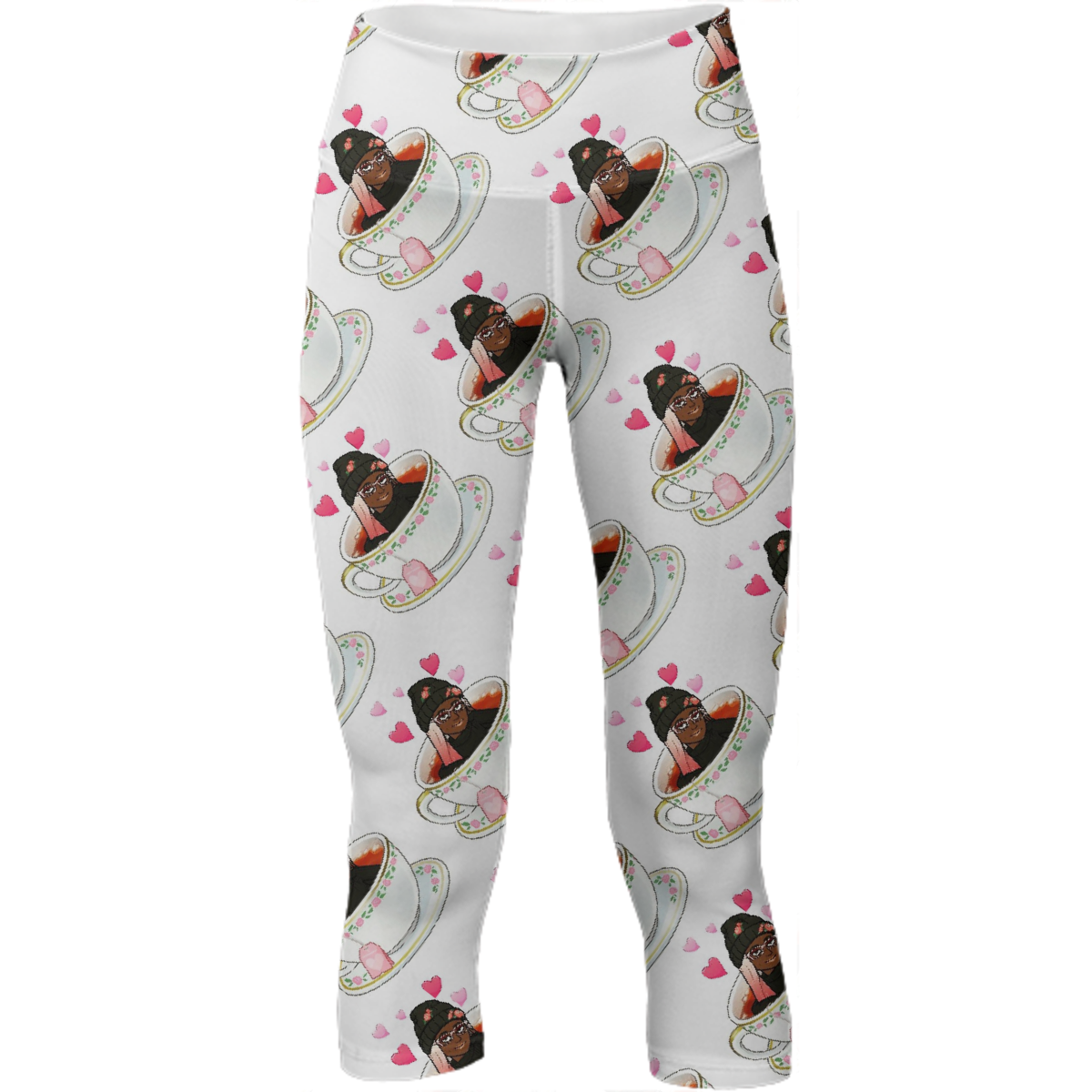 Mid calf length stretch yoga pants with an extra tall waistband for comfort and flexibility during workout.