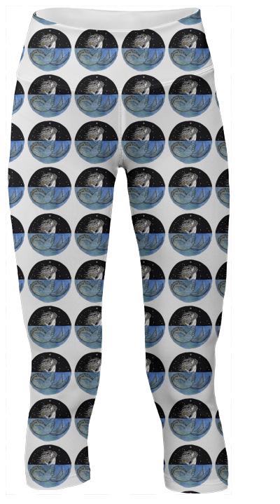 Mid calf length stretch yoga pants with an extra tall waistband for comfort and flexibility during workout.