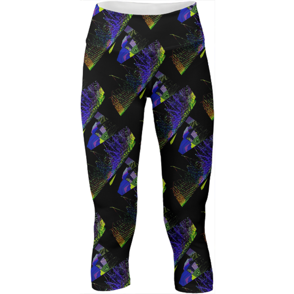 Mid calf length stretch yoga pants with an extra tall waistband for comfort and flexibility during workout.