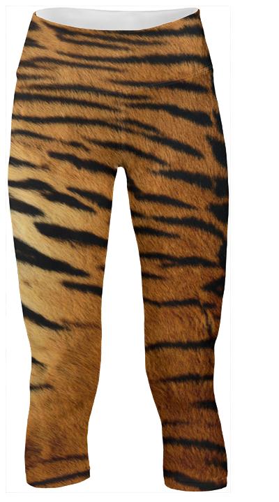 Mid calf length stretch yoga pants with an extra tall waistband for comfort and flexibility during workout.