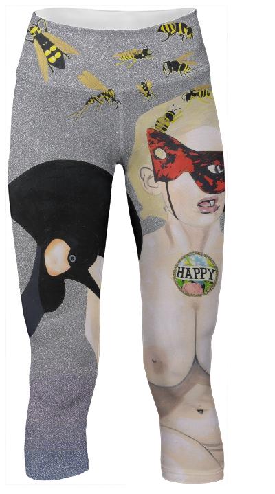 Mid calf length stretch yoga pants with an extra tall waistband for comfort and flexibility during workout.