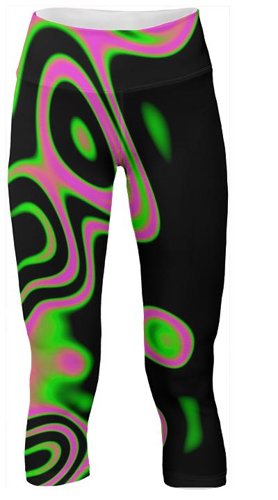 Mid calf length stretch yoga pants with an extra tall waistband for comfort and flexibility during workout.