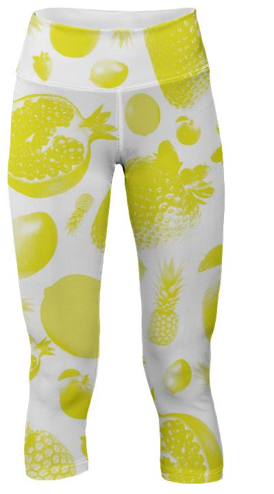 Mid calf length stretch yoga pants with an extra tall waistband for comfort and flexibility during workout.