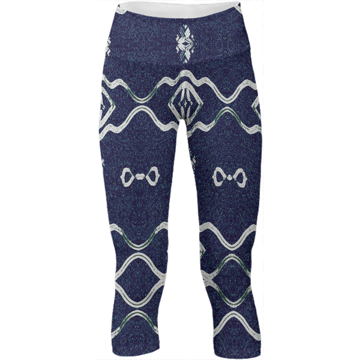 Mid calf length stretch yoga pants with an extra tall waistband for comfort and flexibility during workout.