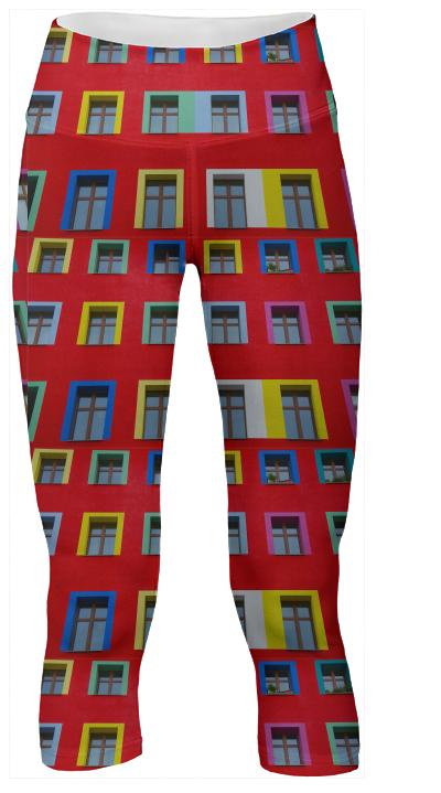 Mid calf length stretch yoga pants with an extra tall waistband for comfort and flexibility during workout.