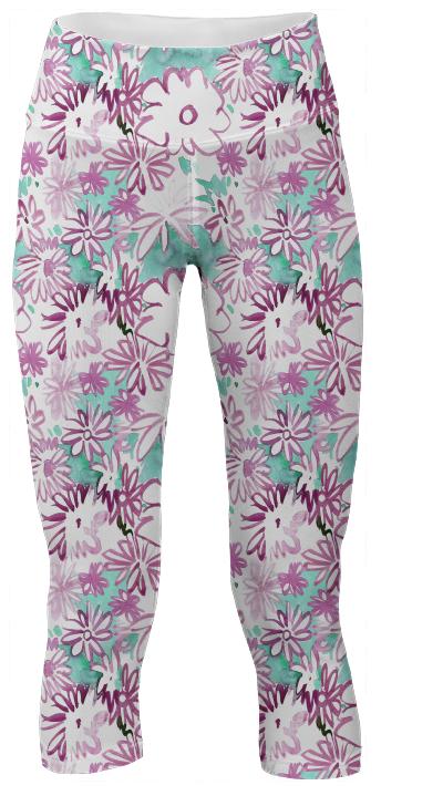 Mid calf length stretch yoga pants with an extra tall waistband for comfort and flexibility during workout.