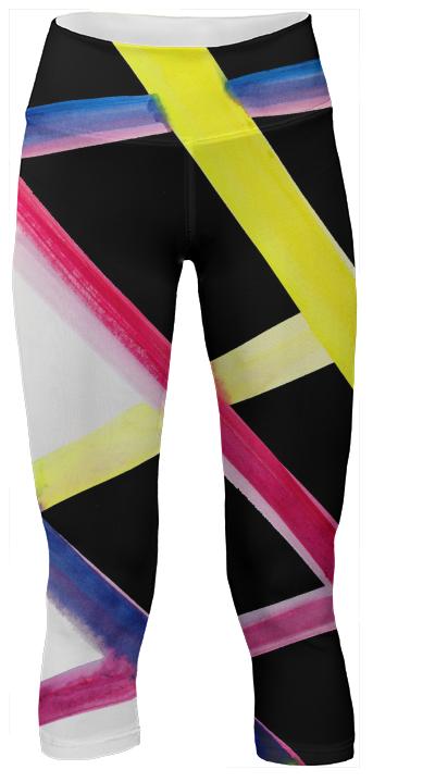 Mid calf length stretch yoga pants with an extra tall waistband for comfort and flexibility during workout.