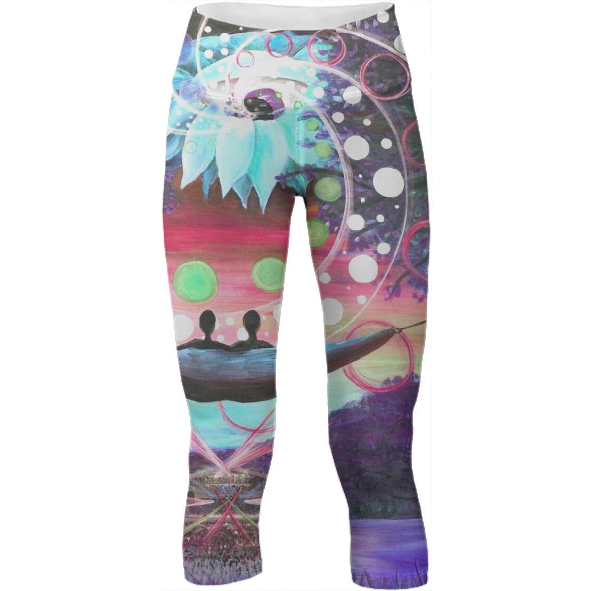 Mid calf length stretch yoga pants with an extra tall waistband for comfort and flexibility during workout.