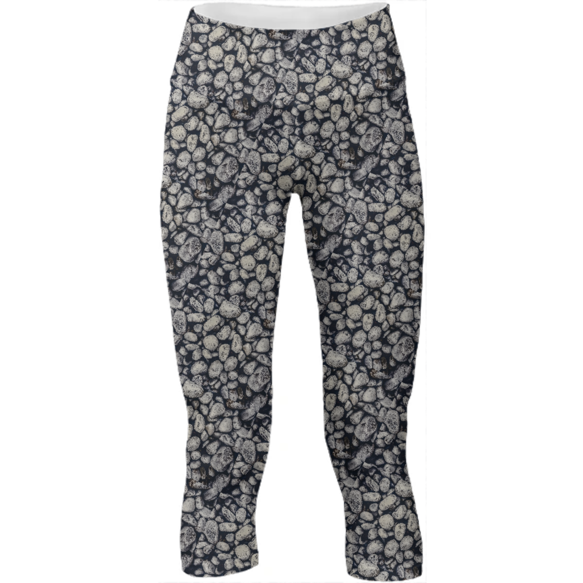 Mid calf length stretch yoga pants with an extra tall waistband for comfort and flexibility during workout.