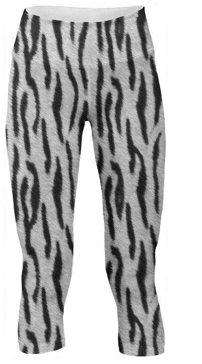 Mid calf length stretch yoga pants with an extra tall waistband for comfort and flexibility during workout.