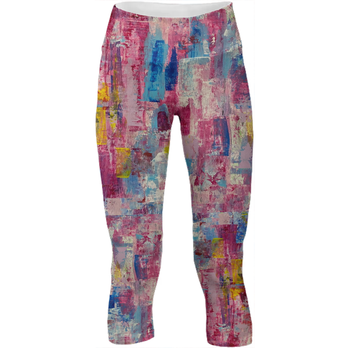 Mid calf length stretch yoga pants with an extra tall waistband for comfort and flexibility during workout.
