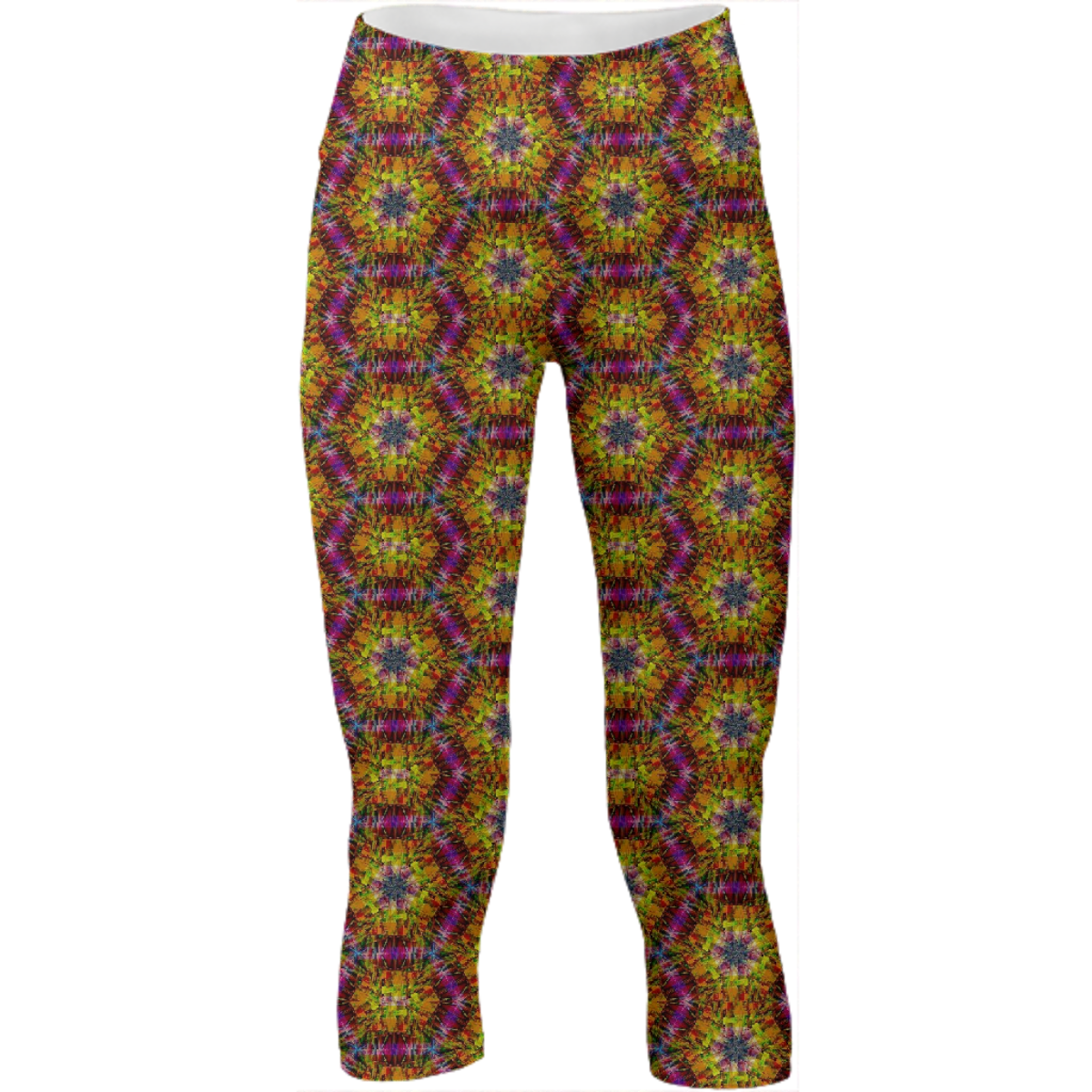 Mid calf length stretch yoga pants with an extra tall waistband for comfort and flexibility during workout.