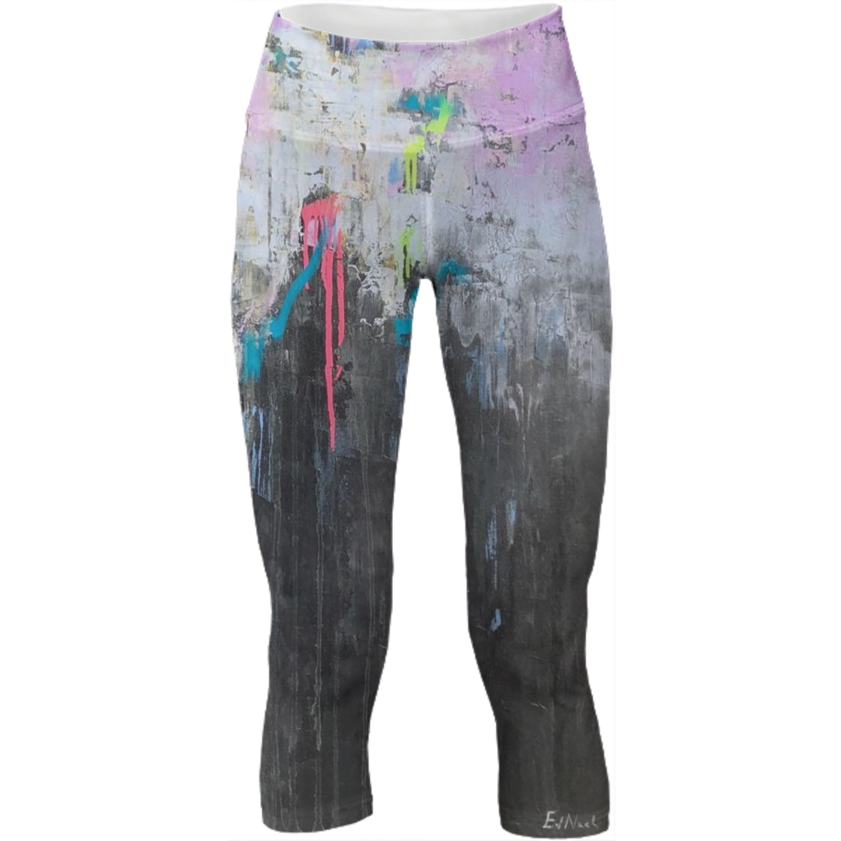 Mid calf length stretch yoga pants with an extra tall waistband for comfort and flexibility during workout.
