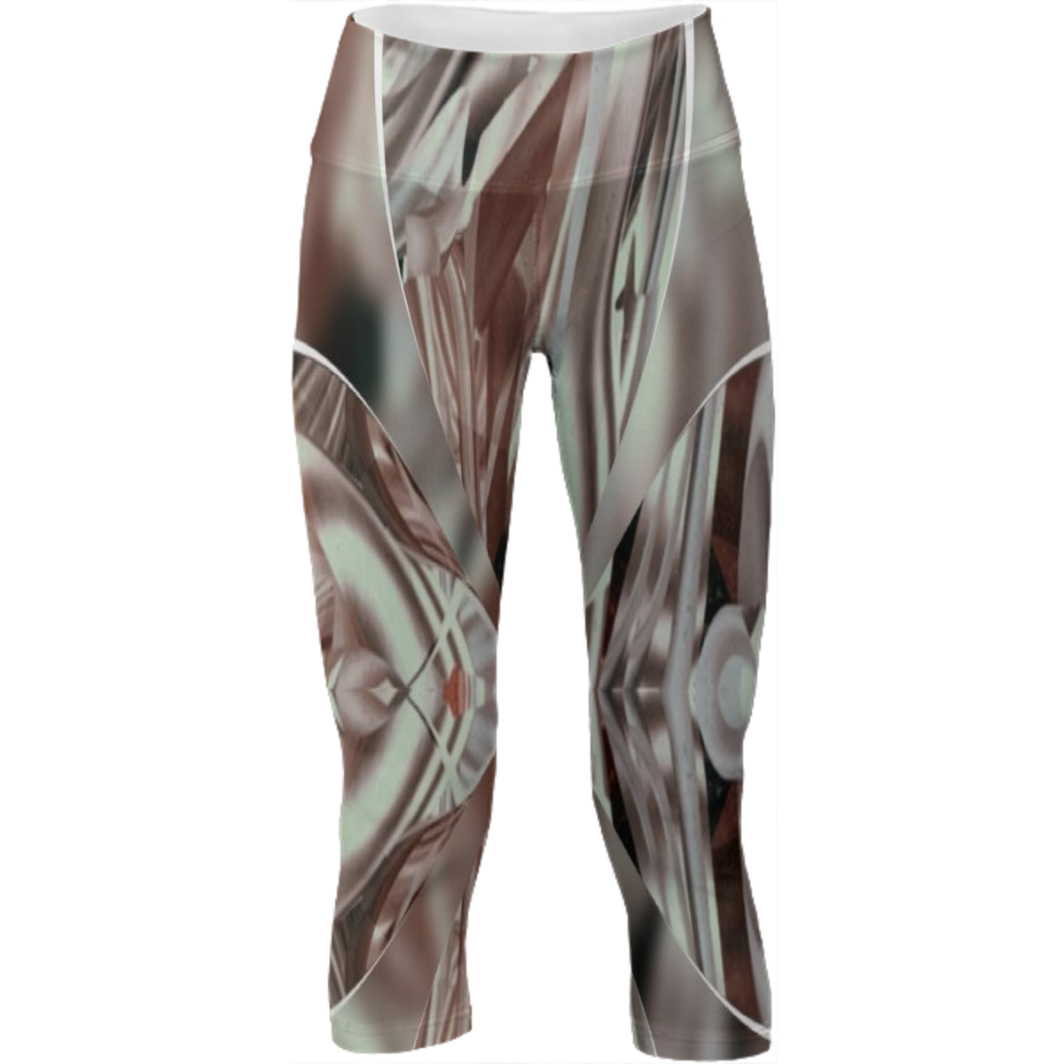 Mid calf length stretch yoga pants with an extra tall waistband for comfort and flexibility during workout.